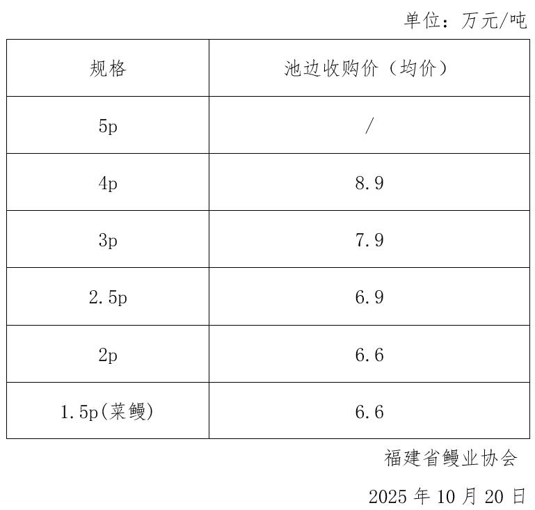 中国鳗鲡市场行情周报(至2025年10月20日)