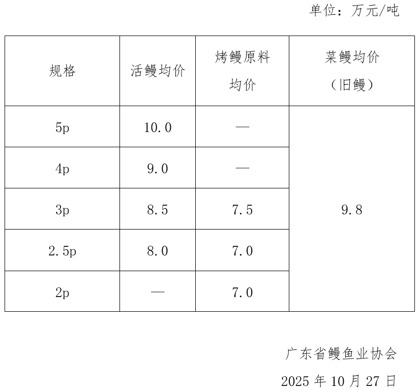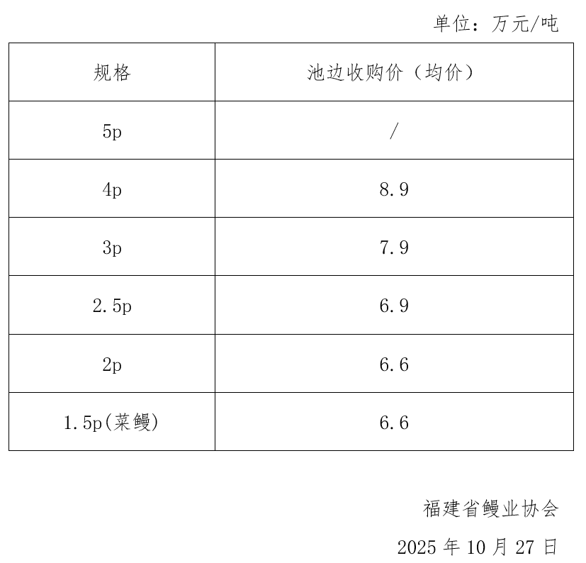 福建美洲鳗鲡市场行情周报由福建省鳗业协会牵头提供,广东日本鳗鲡市场行情周报由广东省鳗鱼业协会牵头提供,由中国渔业协会鳗业工作委员会统一组织发布。