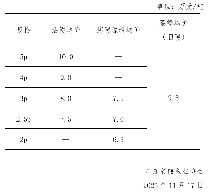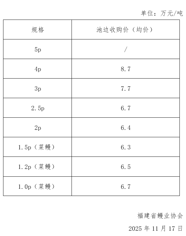福建美洲鳗鲡市场行情周报由福建省鳗业协会牵头提供,广东日本鳗鲡市场行情周报由广东省鳗鱼业协会牵头提供,由中国渔业协会鳗业工作委员会统一组织发布。